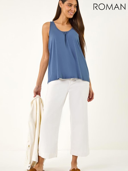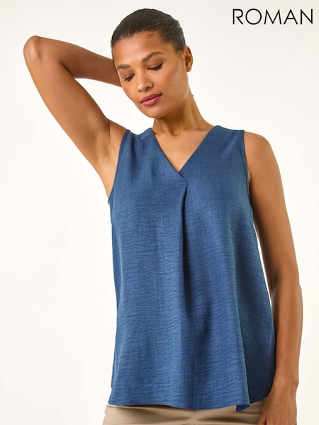 Roman Blue V-Neck Front Pleat Draped Vest Top