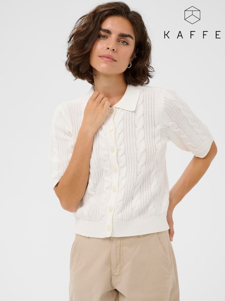 Kaffe White KaBlair Short Sleeve Cable Knit Cardigan