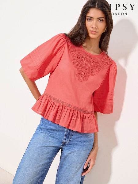 Lipsy Pink Puff Sleeve Applique Top