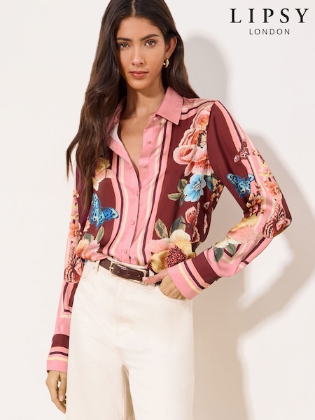 Lipsy Pink Burgundy Floral Satin Shirt