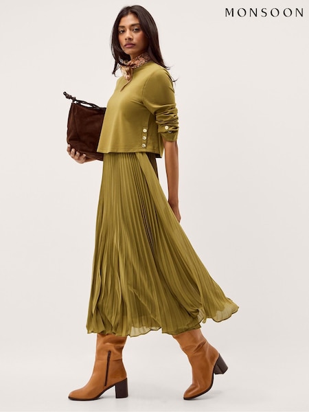 Monsoon Green Penny Pleated Midi Dress
