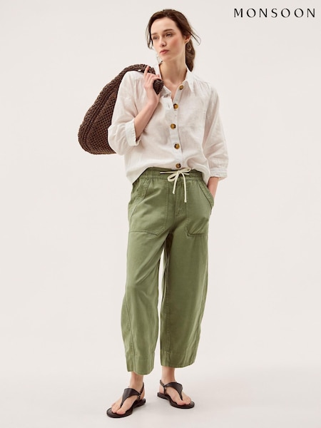 Monsoon Green Megan Cropped Barrel Trousers