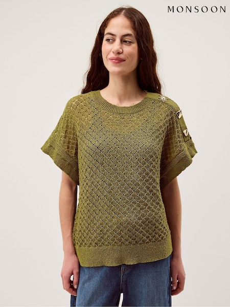 Monsoon Green Bree Button Knit Top
