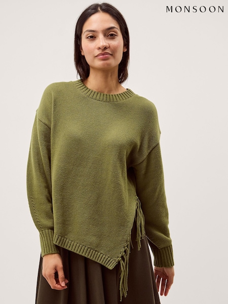 Monsoon Green Fey Asymmetrical Fringe Jumper