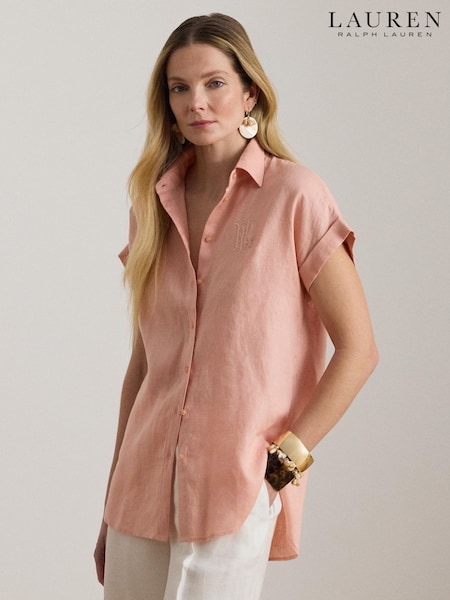 Lauren Ralph Lauren Pink Broono Short Sleeve Button Front Shirt