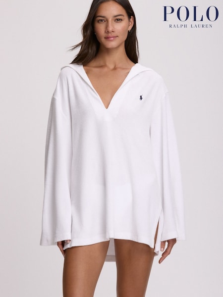 Polo Ralph Lauren White Terry Beachwear Hooded Tunic Cover-Up