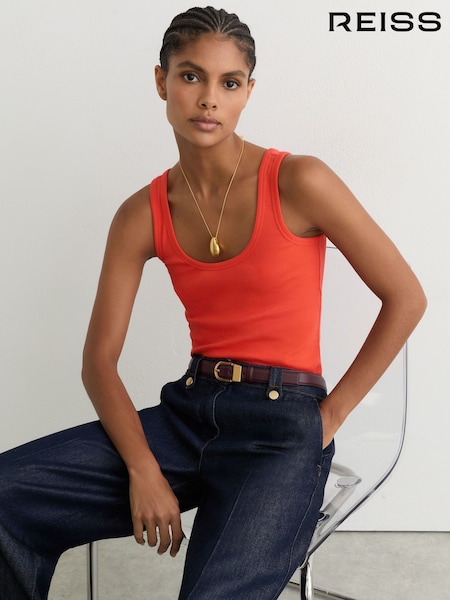 Reiss Coral Pink Violet Stretch-Cotton Ribbed Vest