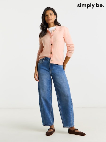 Simply Be Pink Button Through Collar Cardigan