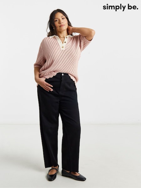 Simply Be Pink Frill Hem Crochet Polo Top