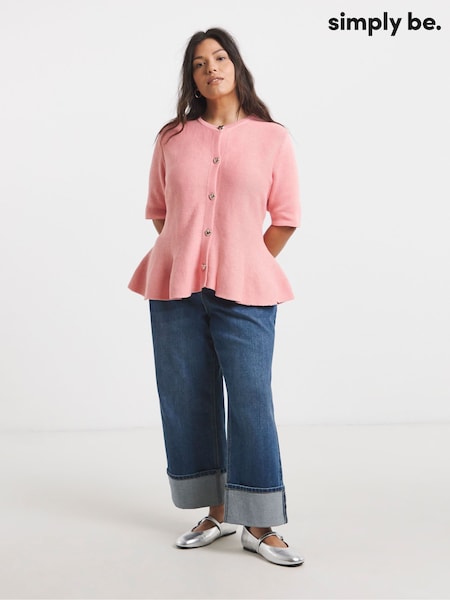 Simply Be Pink Short Sleeve Peplum Cardigan