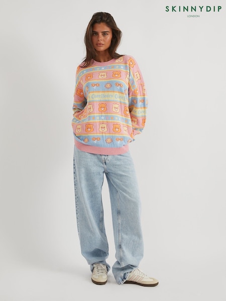 Skinnydip Pink Care Bears Striped Knitted Jumper