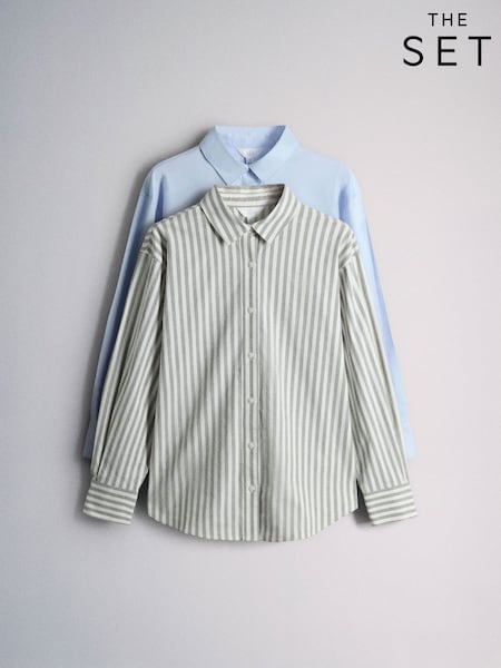 The Set 2 Pack Oxford Shirts White/Khaki Stripe