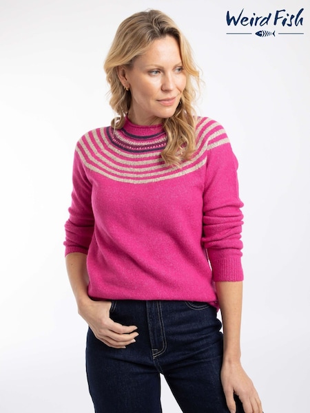 Weird Fish Pink Sinatra Patterned Knit Jumper