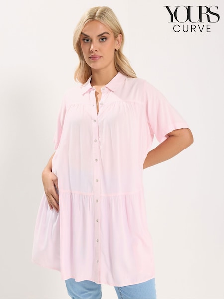 Yours Curve Pink Tiered Smock Chambray Shirt