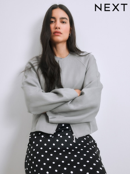 Grey Funnel Neck Zip Through Faux Fur Jacket