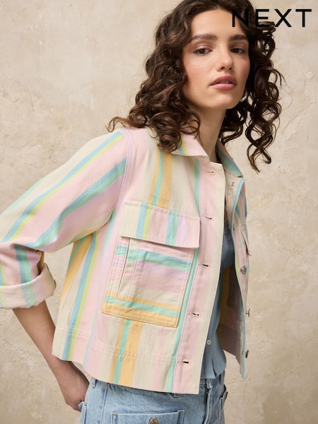 Navy Blue Check Short Padded Coat with Detachable Sleeves
