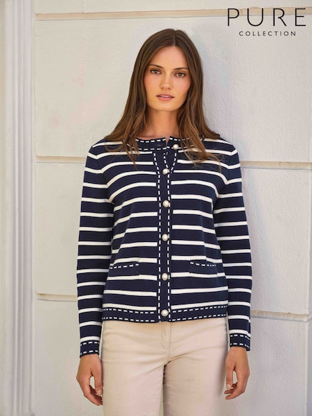 Pure Collection Blue Cotton Wool Striped Milano Jacket
