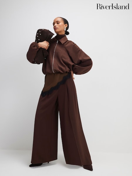River Island Brown Faux Suede Dropped Bomber Jacket