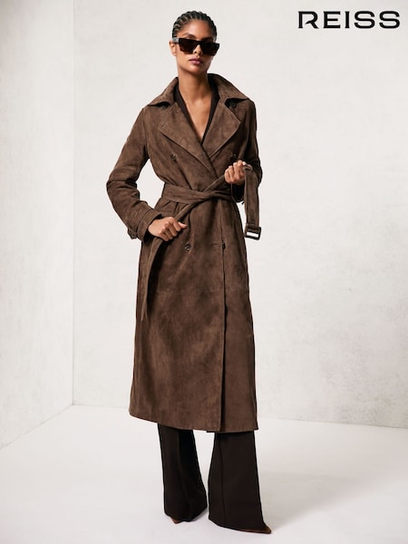 Reiss Neutral Sonny Petite Suede Cropped Trucker Jacket