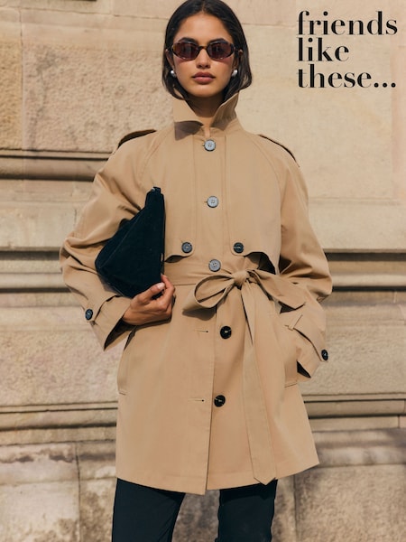 Friends Like These Brown Mid Length Trench Jacket With Cape Detail