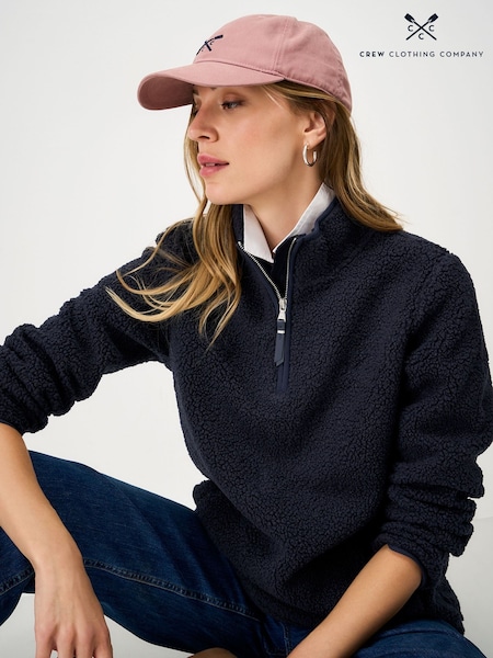 Crew Clothing Blue Bouclé Borg Half-Zip Fleece
