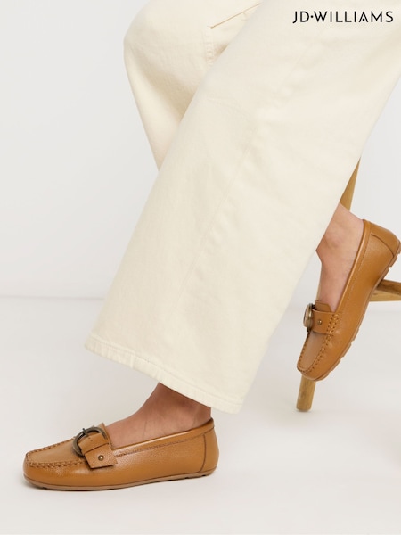JD Williams Nude Wide Fit Leather Driving Moccasins
