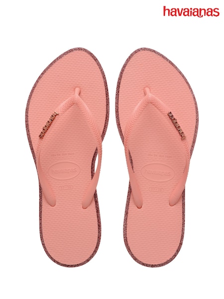 Havaianas Brown Slim Point Glitter Flip Flops