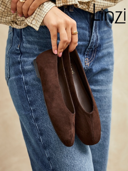 Linzi Brown Wide Fit Compete Pointed Toe Ballet Flat Shoes
