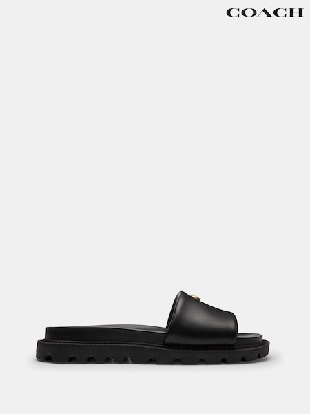 COACH Black Brynn Leather Slide Sandals
