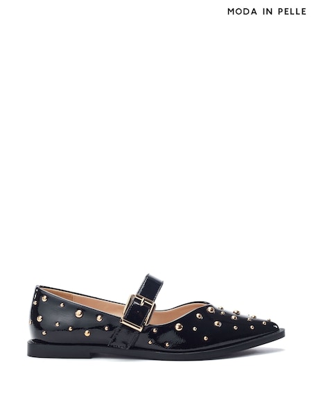 Moda in Pelle Black Fijia Studded Mary Jane Shoes