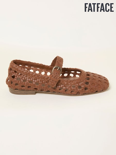 FatFace Brown Leather Weave Mary Jane Flat