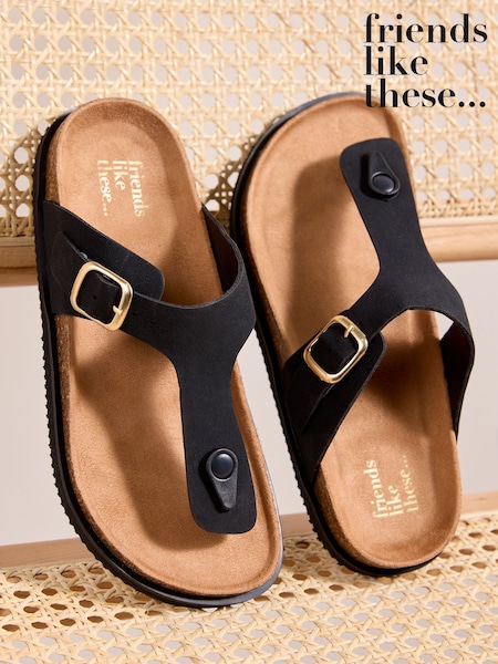 Friends Like These Black T Bar Flat Casual Footbed Sandals