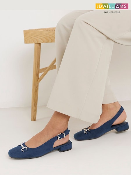JD Williams Blue Wide Fit Low Block Slingbacks Heels With Snaffle Trim