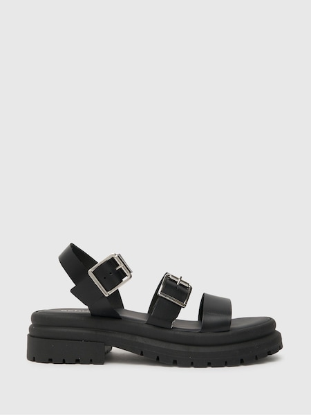 Schuh Black Tyla Leopard Chunky Sandals