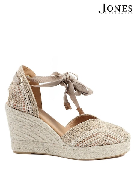 Jones Bootmaker Cream Alivia2 Leather Wedge Espadrilles Shoes