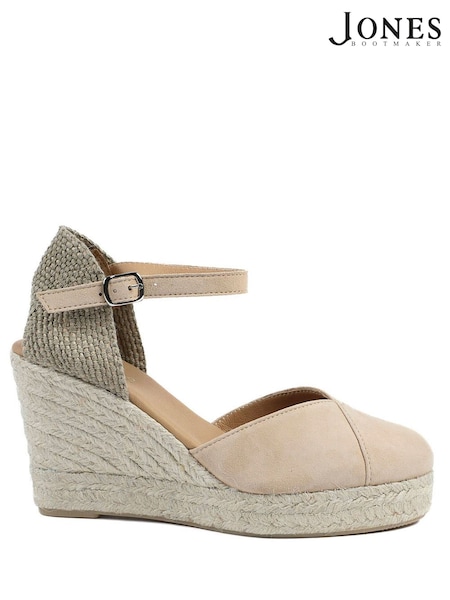 Jones Bootmaker Beige Suede Alivia2 Leather Wedge Espadrilles Shoes