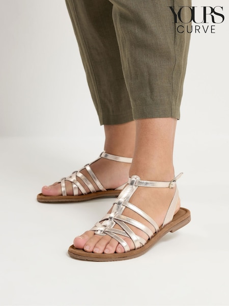 Yours Curve Gold Extra Wide Fit Cross Strap Footbed Sandals