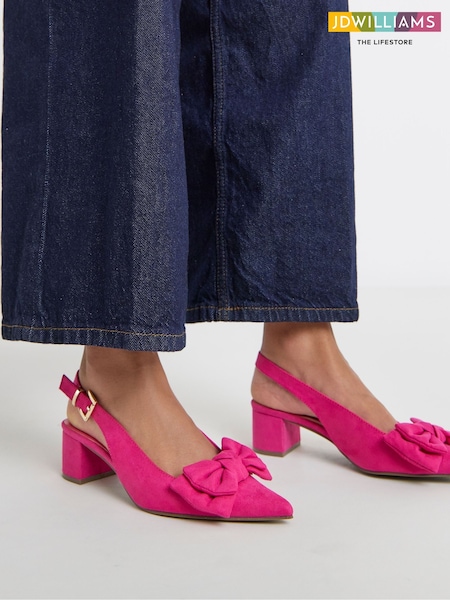 JD Williams Pink Extra Wide Fit Low Block Heel Slingbacks With Bow