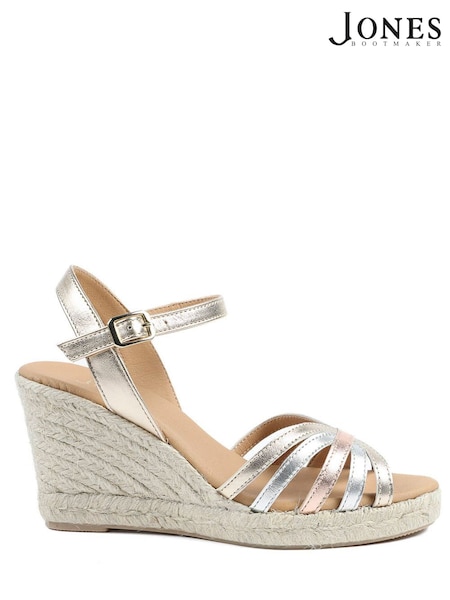 Jones Bootmaker Gold Alivia2 Leather Wedge Espadrilles Shoes