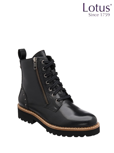 Lotus Black Lace-Up Ankle Boots