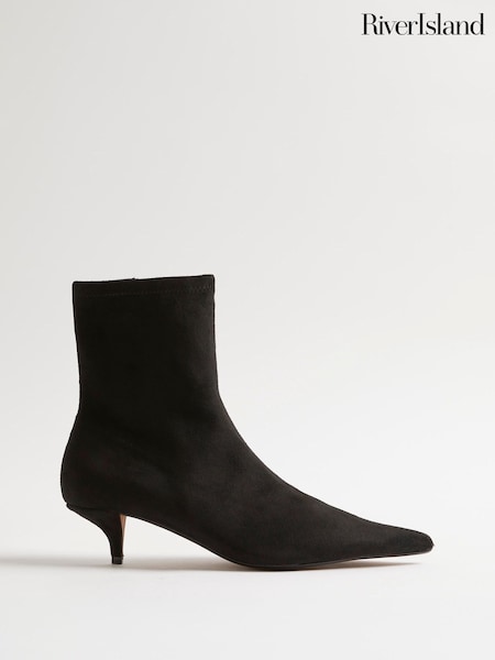 River Island Black Point Kitten Heel Sock Boots