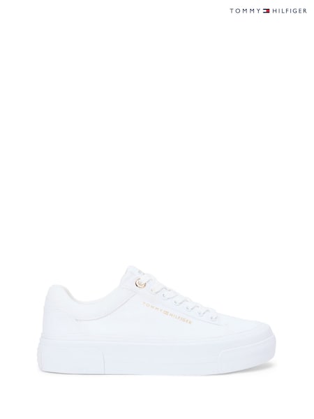 Tommy Hilfiger White Metallic Logo Canvas Platform Trainers