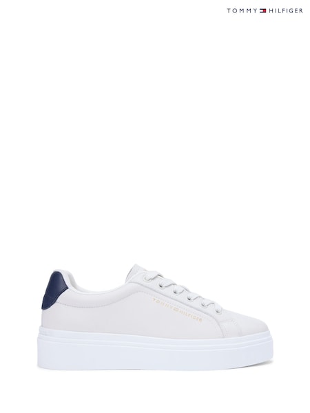 Tommy Hilfiger Natural Logo Leather Platform Cupsole Trainers