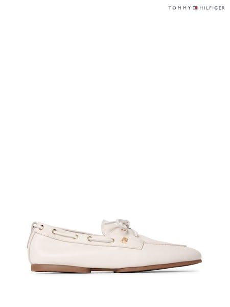 Tommy Hilfiger Natural Leather Monogram Boat Shoes