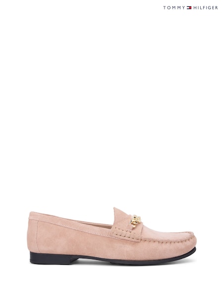 Tommy Hilfiger Pink Suede Chain Penny Loafers