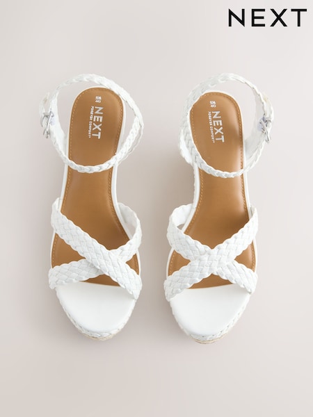 White Standard/Wide Fit Leather Bling Detail Slingback Sports Wedge Sandals