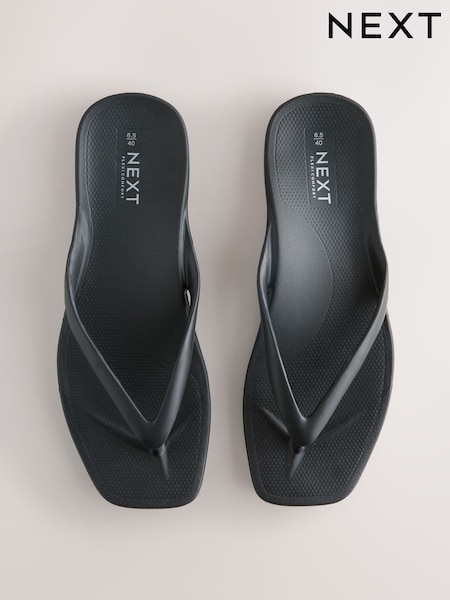 Black Square Toe Flip Flops
