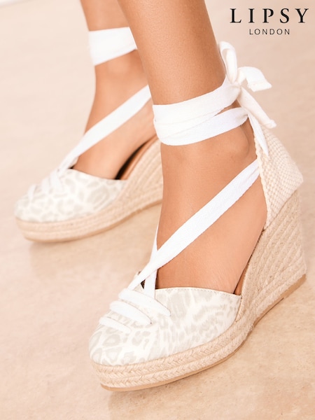 Lipsy Cream Standard Fit Closed Toe Ankle Tie Mid Heel Espadrille Summer Sandals