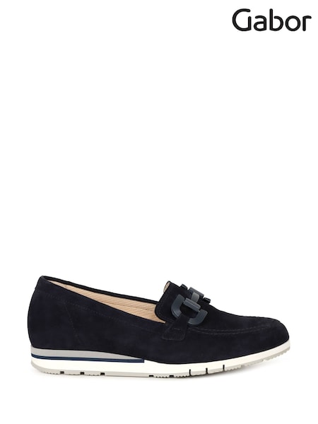 Pavers Blue Wide Fit Leather Slip On Shoes With Zip Fastening