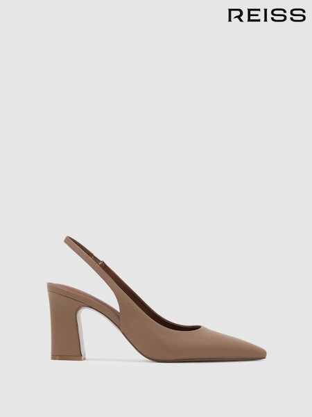 Reiss Taupe Lorena Leather Slingback Court Shoes
